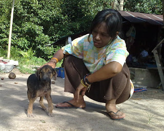 da puk nichts anderes macht als die kleinen zu baden und mit reis und huehnerknochen und anderen essensresten unzureichend zu fuettern war ich oft drueben und hab welpenfutter gebracht, hab sie entwurmt und mit flohpuder eingestaeubt. die kleinen wurden jedoch nicht fit und hatten staendig neue floehe. ilaria ging auch viele tage hinueber und brachte futter und kalziumtabletten und machte flohpuder auf die kleinen.